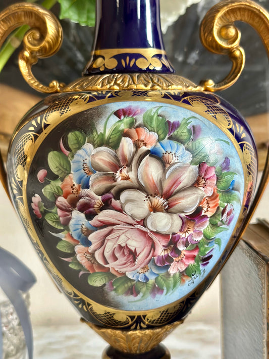 Sold outHand-Painted Italian Cobalt Blue Urn