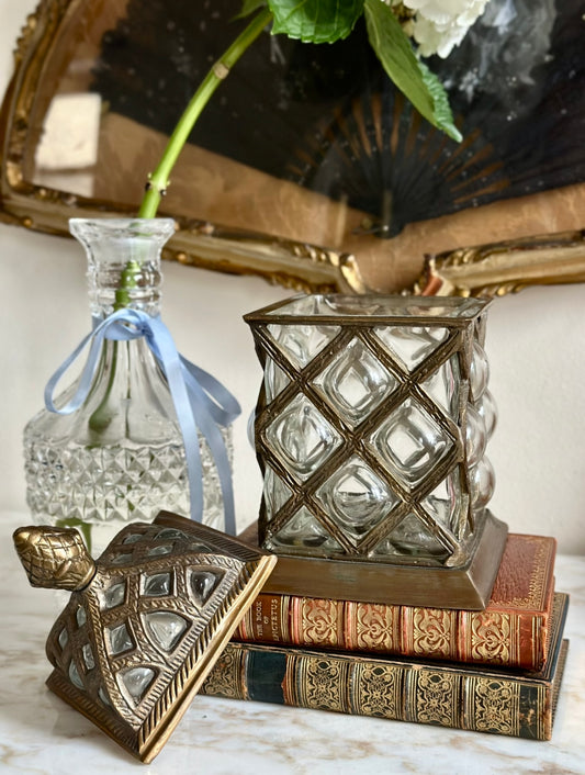 Bubble Glass & Gilt Bronze Lattice Jar
