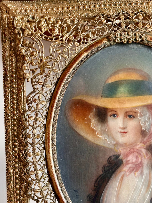 Antique French Hand-Painted Portrait Miniature