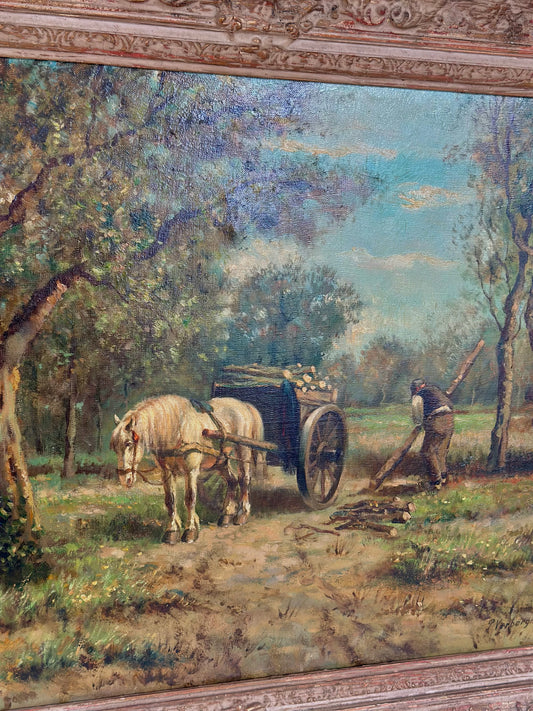Antique Pastoral Landscape Oil on Canvas