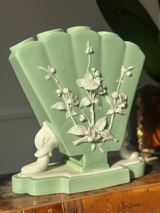 Antique Minton Green Relief Finger Vase