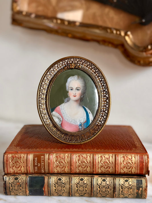 Oval Miniature Portrait in Ornate Brass Frame